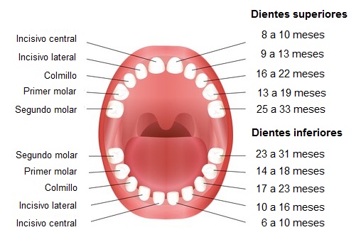 La aparición de los dientes de leche en los niños comprende un período que abarca desde los 6 a los 30 meses aproximadamente. Este período puede verse variado en algunas ocasiones, existiendo retraso o adelanto en la erupción de los dientes.